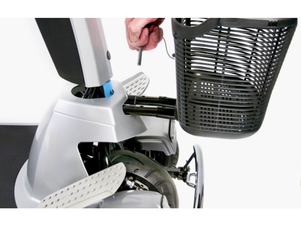 → Vyberateľný nákupný košík uchytený na ráme k podvozku, pri jeho naplnení nemá jeho hmotnosť vplyv na riadenie, ktoré zostáva príjemne voľné