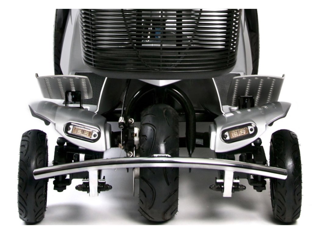 Skútre Quingo majú nárazníky pohlcujúce energiu. Väčšina tradičných troch a štvorkolesových skútrov má nárazník naskrutkovaný priamo na podvozok skútra. Pokiaľ by ste však narazili skútrom na prekážku, tento náraz by mohol poškodiť podvozok skútra, čo by znamenalo drahé opravy. Jednou z výhod tlmiaceho nárazníka Quingo je, že jeho pružné uchytenie pohltí pri náraze veľkú časť kinetickej energie a nedôjde tak k vážnemu poškodeniu skútra. Nárazníky Quingo sú navrhnuté tak, aby boli odpružené, ale pritom pevné a bezpečne pohltili väčšiu časť energie pri náraze.