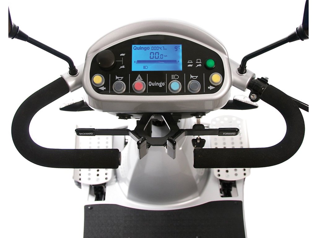 Quingo bude vždy vyrábať skútre čo najbezpečnejšie tak, aby ste si cestu naozaj v pokoji užili. Patentovaný Kerb Master znamená, že skútre Quingo sa na rozdiel od iných nemôžu dostať na bok pri zjazde z obrubníka alebo inej prekážky. Ďalším bezpečnostným prvkom je náš nárazník pohlcujúci energiu. Skúter Quingo funguje skvele v dopravných situáciách, kde môžu iné mobilné skútre mať problém.